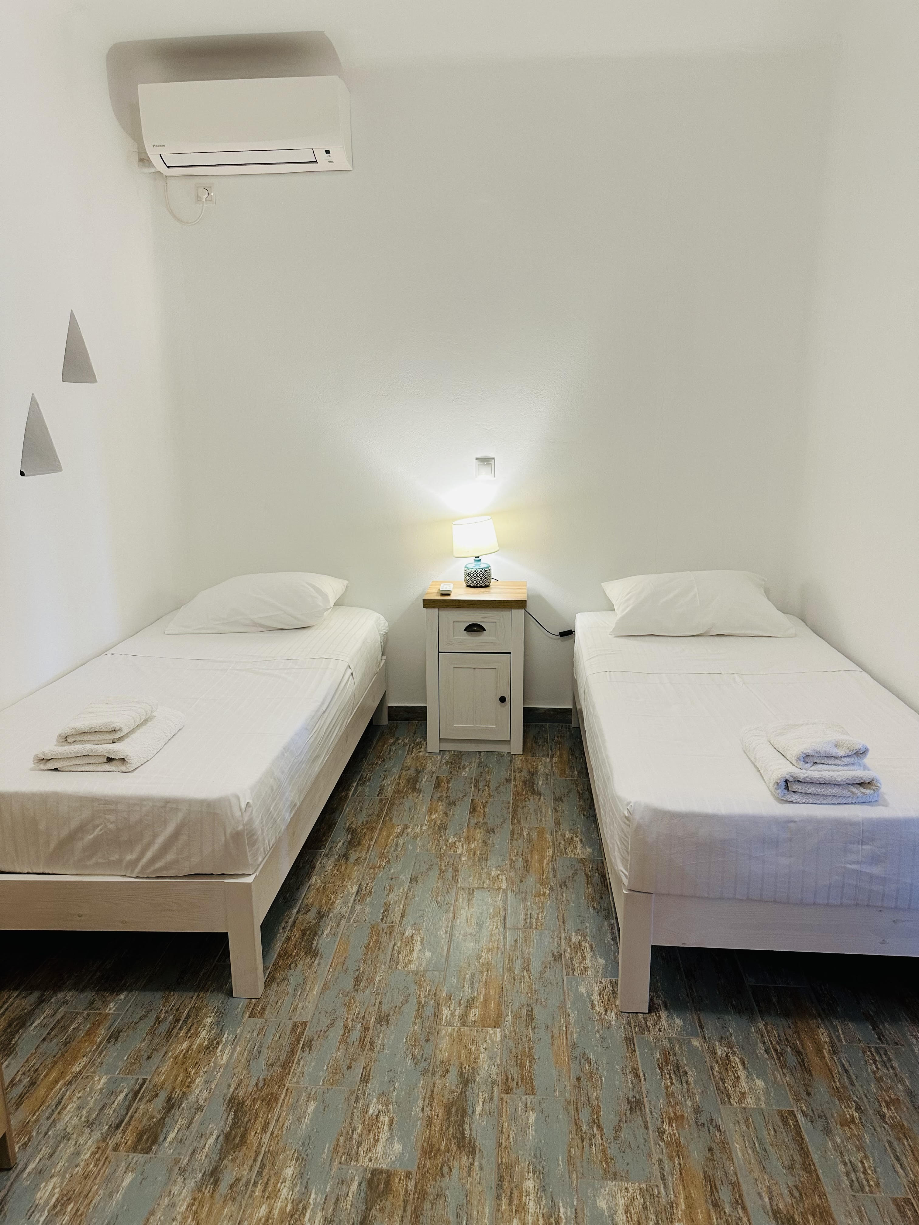 - 1 υπνοδωμάτιο με δυο μονά κρεβάτια